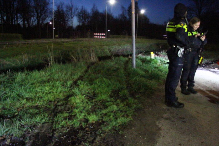 Een automobilist is met een auto van de weg geraakt en op zijn kant in de sloot beland. Na onderzoek van de hulpdiensten bleek niemand meer in de auto aanwezig te zijn.