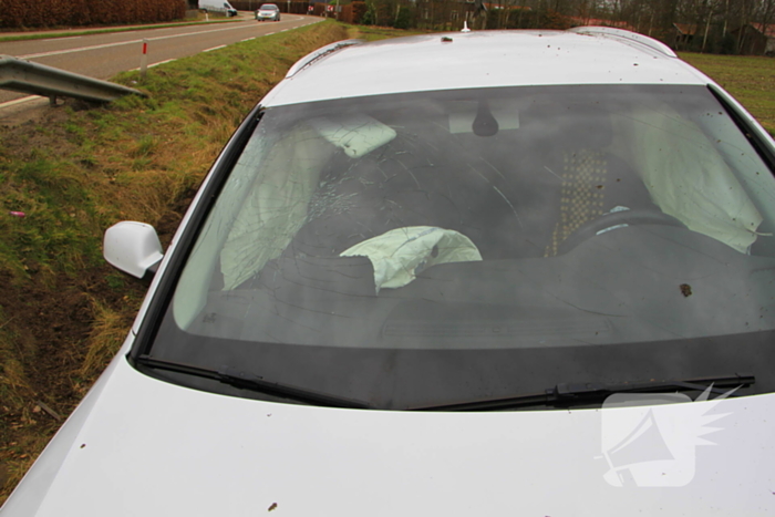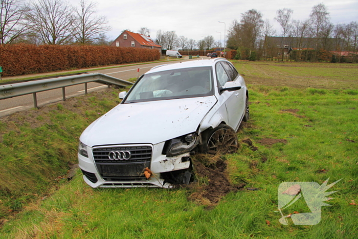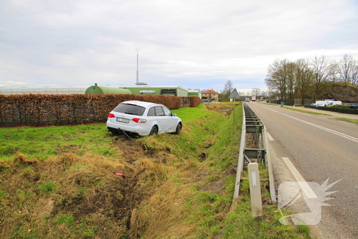 Een automobilist was door een nog onbekende oorzaak van de weg geraakt, over twee sloten heen gereden en meters verderop tot stilstand gekomen. Het is niet bekend of er iemand gewond is geraakt bij het ongeval.
