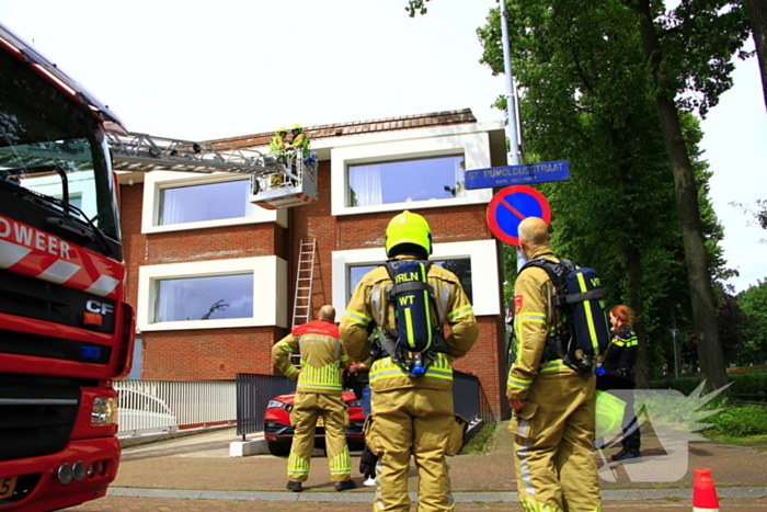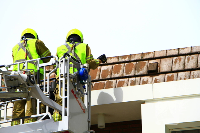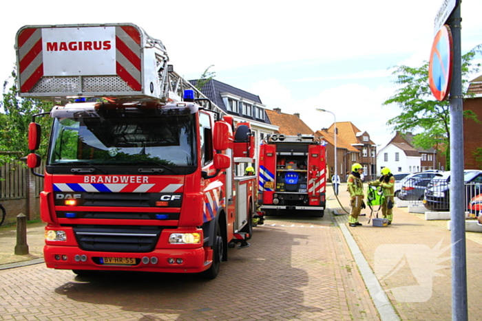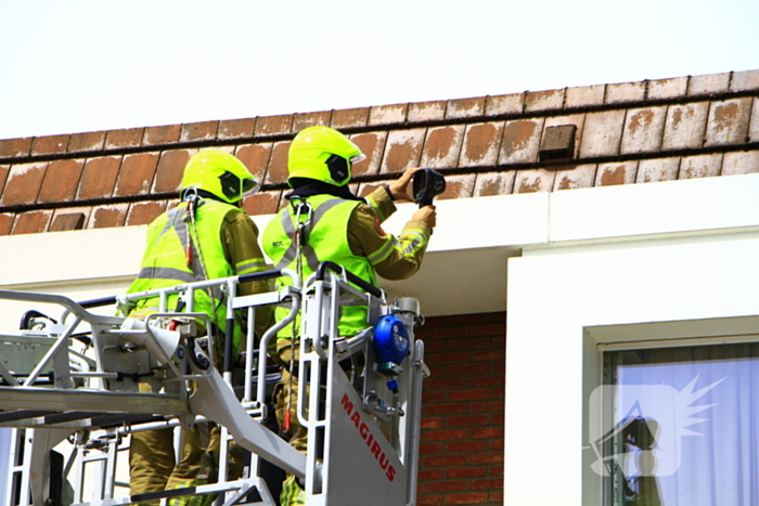 De brand bevond zich in de spouwmuur. Brandweerlieden hebben met behulp van een autoladder de brand gedoofd en met warmtebeeldcamera de muur gecontroleerd.