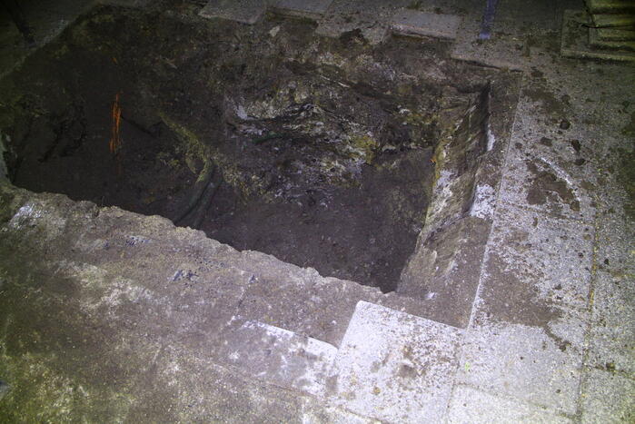 Brandweerlieden hebben de kruipruimte geventileerd. De oorzaak van het lek is onbekend.