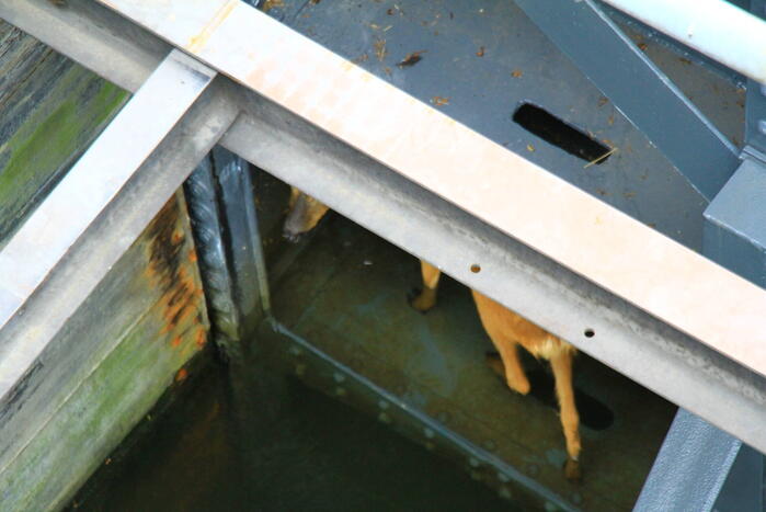 WEERT - Donderdagmorgen 11 mei rond 11.10 uur is hertje Bambi vast komen te zitten in de sluispoort aan de Kazernelaan in 112 Weert. Gelukkig zijn brandweerlieden snel ter plaatse gekomen om te helpen.