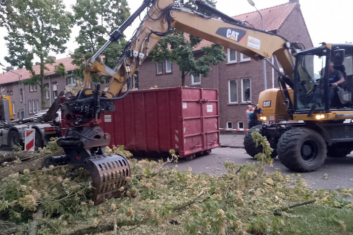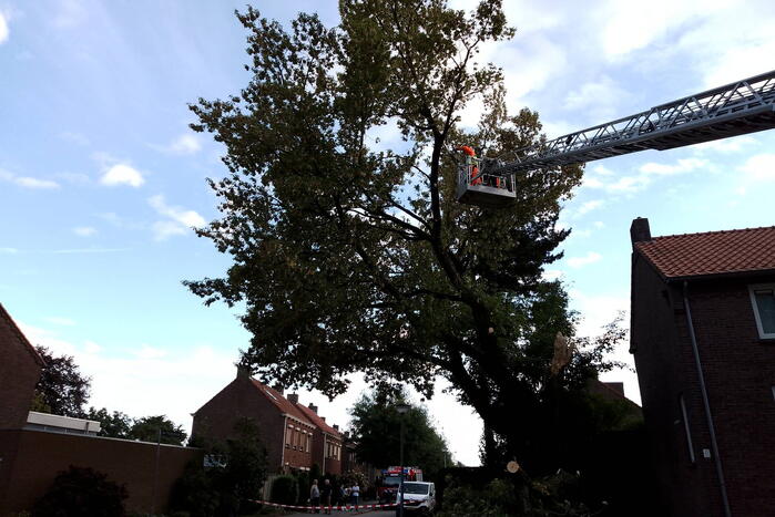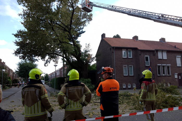 Door de harde wind was een grote tak van een boom naast een woning afgebroken. Brandweerlieden hebben met behulp van een autoladder de volledige boom omgezaagd. De gemeente heeft samen met een loonbedrijf de omgezaagde boom weggehaald.