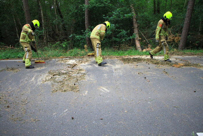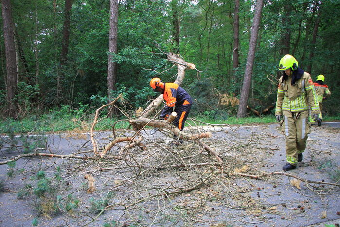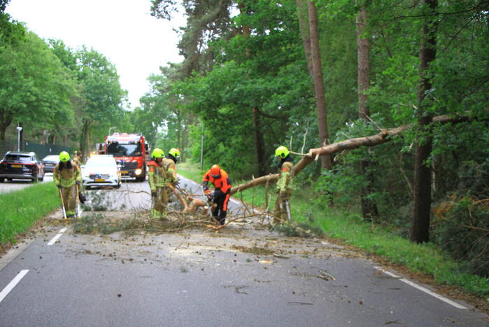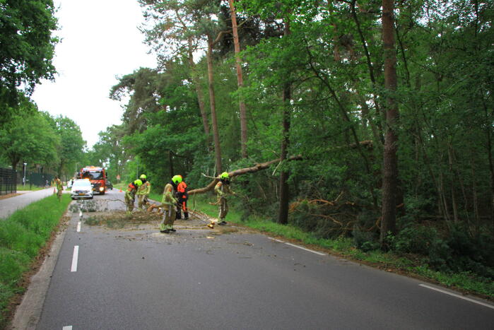 Een omgevallen boom blokkeerde de volledige weg. De brandweer heeft de boom in stukken gezaagd waarna de weg weer vrij was. Het verkeer kon tijdens de werkzaamheden via een fietspad langs de omgevallen boom.