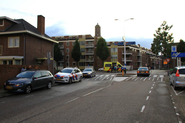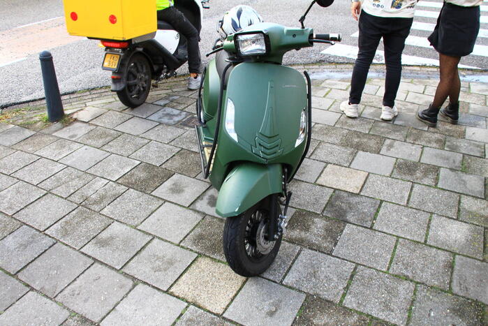 Een personenauto en een scooterrijder waren met elkaar in botsing gekomen. De scooterrijder is nagekeken in de ambulance maar hoefde niet naar het ziekenhuis te worden vervoerd. Beide voertuigen liepen lichte schade op.