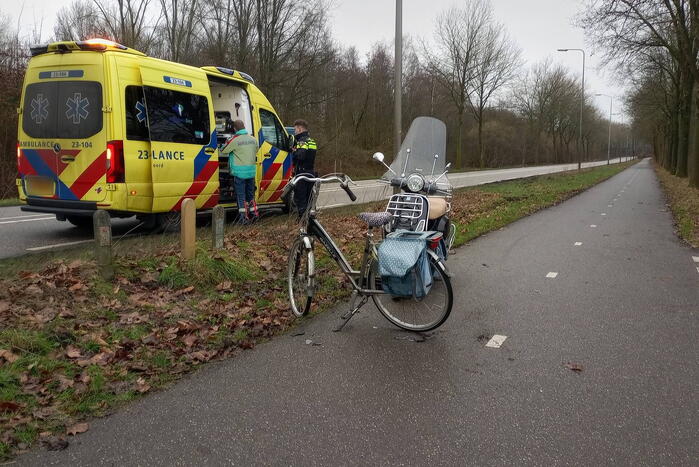 Een scooter en fiets hebben elkaar hard geraakt. Een van de twee weggebruikers zijn door een ambulancebroeder gecontroleerd op letsel. Niemand hoefde mee naar het ziekenhuis.