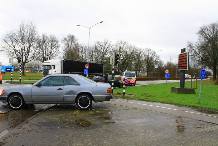 Twee personenwagens kwamen hier met elkaar in botsing. Niemand raakte gewond. Het verkeer ondervindt enige hinder van het verkeersongeval. Twee voertuigen hebben behoorlijke schade opgelopen bij het ongeval en worden door een berger afgesleept.