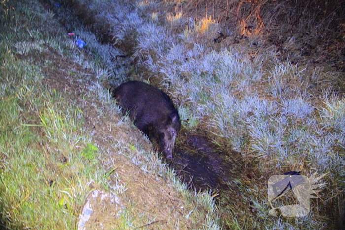 Twee voertuigen zijn in botsing gekomen met twee wilde zwijnen, die beiden niet hebben overleefd. Eén zwijn is op het fietspad aangetroffen, terwijl het andere zwijn in een greppel lag. De politie is ter plaatse om de situatie te controleren.