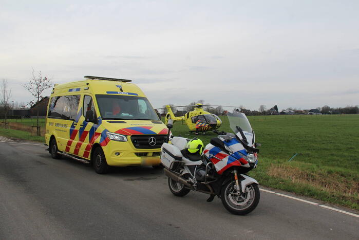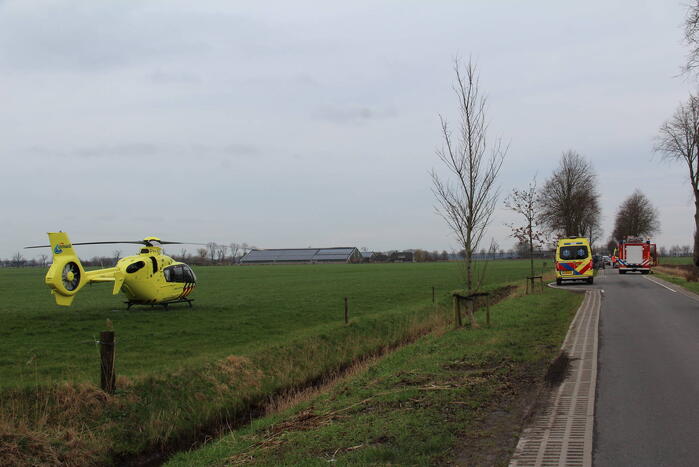 Verschillende hulpdiensten werden ingezet voor een reanimatie midden op straat. Een trauma-arts werd per helikopter ingevlogen voor behandeling van de patiënt. De helikopter landde in een weiland naast de incident locatie.