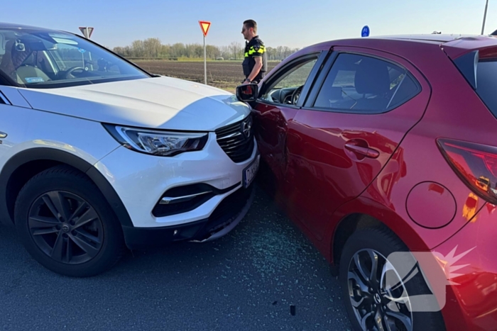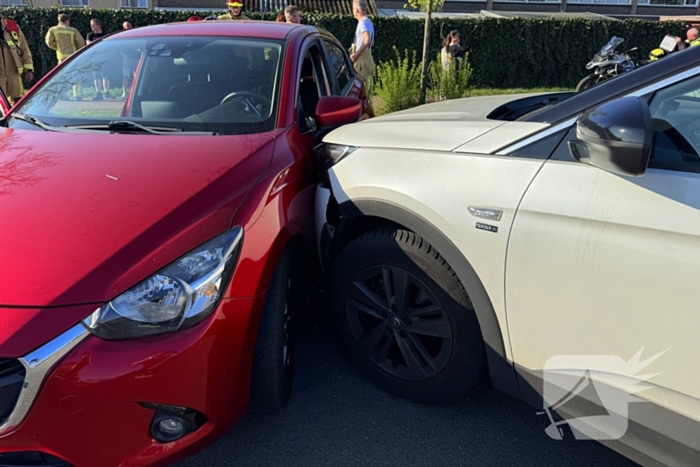 Twee voertuigen zijn met elkaar in botsing gekomen. De bestuurders konden zelfstandig uit het voertuig komen. De brandweer werd opgeroepen omdat er mogelijk sprake was van een beknelling. Eén persoon werd nagekeken door het ambulancepersoneel onbekend is of vervoer naar een ziekenhuis noodzakelijk was.