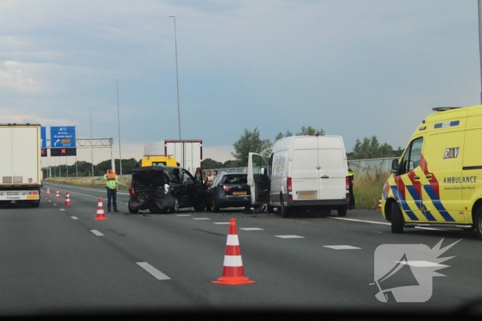 Twee auto's en een bestelbus zouden betrokken zijn geraakt bij het verkeersongeval. Een ambulance is gekomen om de betrokkenen te controleren op eventuele verwondingen. Hoe het ongeval precies kon gebeuren, is niet duidelijk. Het verkeer heeft enige hinder van het ongeval.