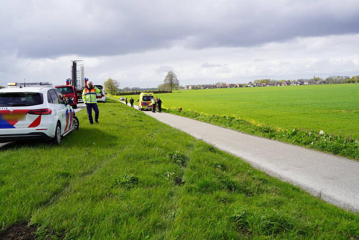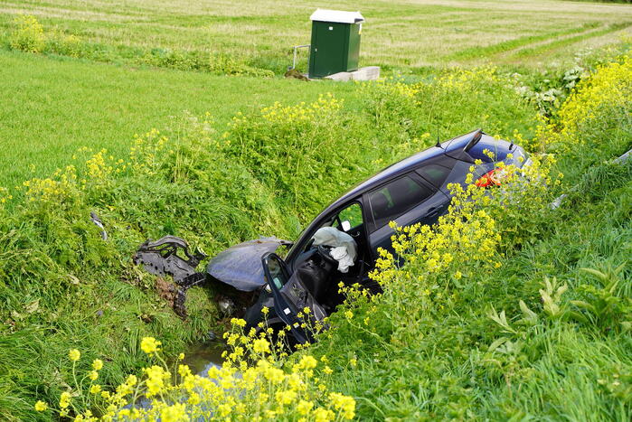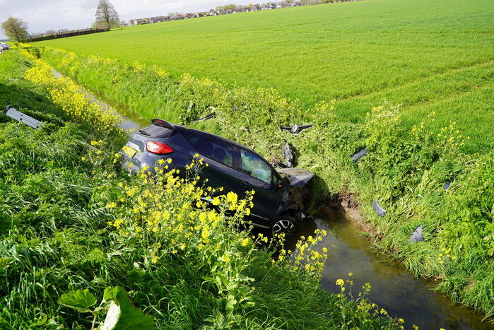 Een bergingsbedrijf is gekomen en heeft het beschadigde voertuig uit de sloot gehaald en afgesleept.