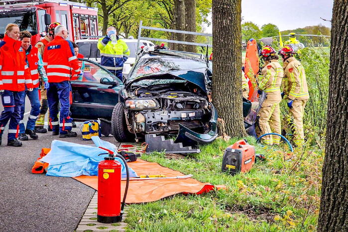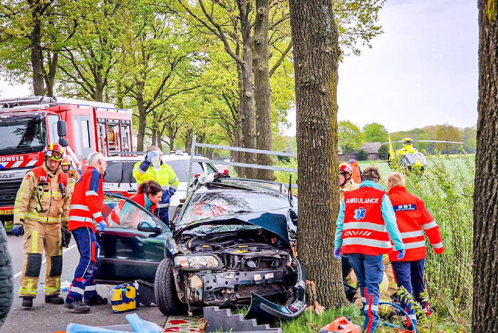 Bij aankomst van de hulpdiensten bleek een personenauto met aanhanger van de weg geraakt en tegen een boom tot stilstand gekomen. De aanhanger had zich door de klap achter in de auto geboord. De bestuurder is door de brandweer uit het voertuig bevrijd. Na stabilisatie in de ambulance is het slachtoffer naar het ziekenhuis vervoerd.