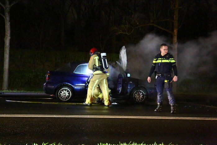 De brandweer wist het vuur snel te blussen maar kon niet voorkomen dat de auto in in vlammen opging. Hoe de brand heeft kunnen ontstaan, is niet duidelijk. Er vielen geen gewonden. Een bergingsbedrijf heeft de auto meegenomen.