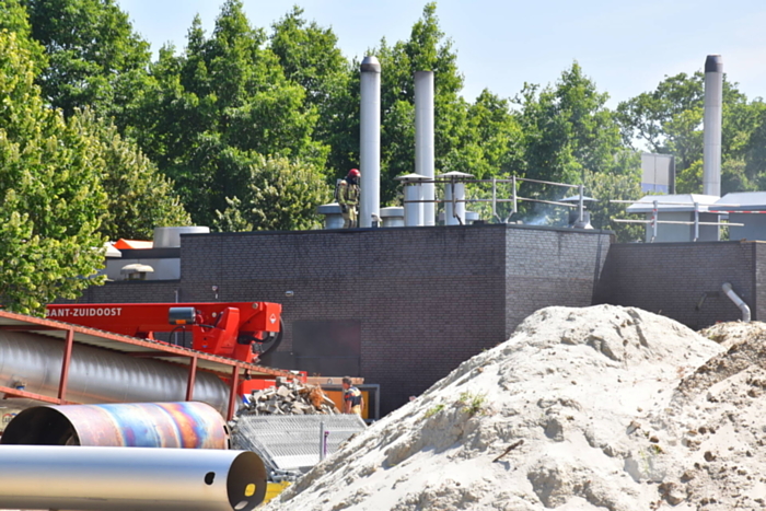De brand begon tijdens sloopwerkzaamheden in de technische ruimte. In en rond het zwembad is men nog volop bezig met de opbouw.