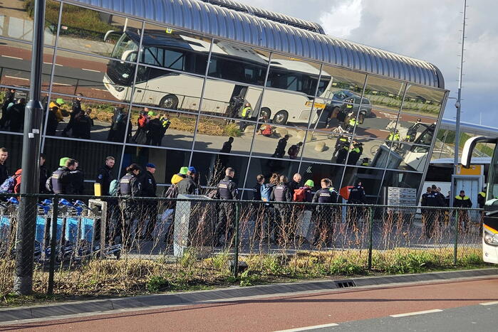 Alle demonstranten zijn omstreeks 16.00 door de Koninklijke marechaussee en politie begeleid naar touringcars. De demonstranten zijn naar het station in Best gebracht.