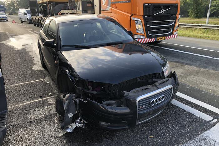 Een automobilist wilde wisselen van rijstrook, waarna hij met zijn auto tegen een bestelbus knalde. Ook werd een tweede auto licht geraakt. De auto heeft een flinke schade opgelopen. Een bergingsbedrijf heeft het voertuig geborgen. Bij het ongeval raakte niemand gewond.