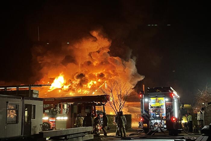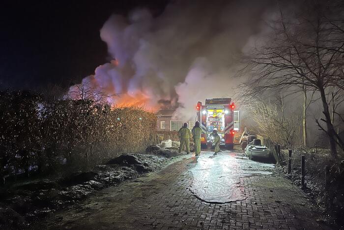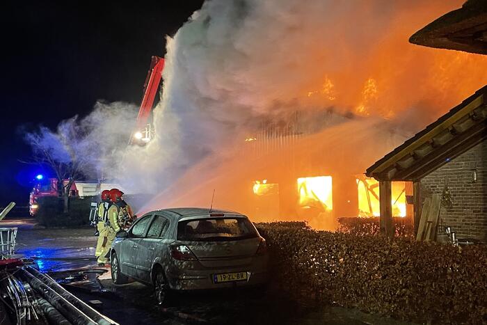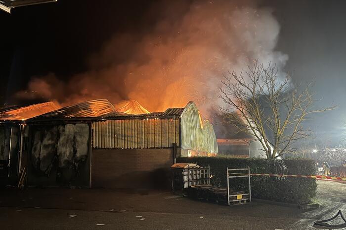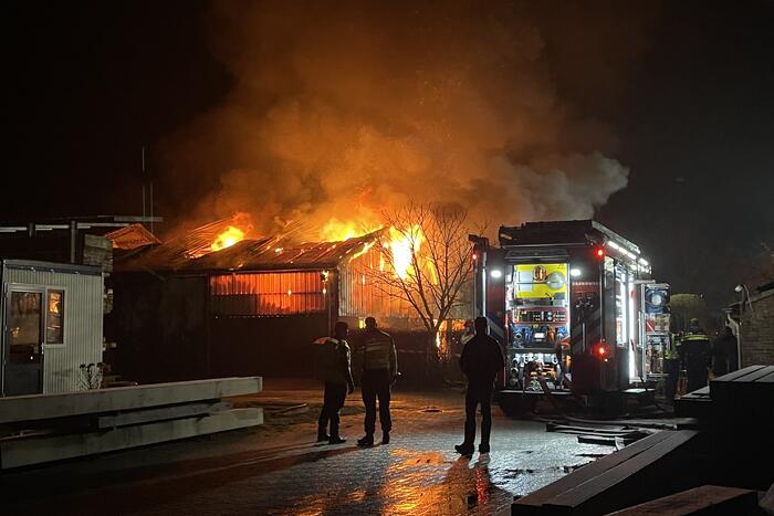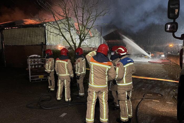 De brandweer schaalde snel op naar het sein 'grote brand'. De loods kan als verloren worden beschouwd. De brandweer zet alles op alles om de naastgelegen woning te sparen. Hoe de brand heeft kunnen ontstaan, is niet bekend.