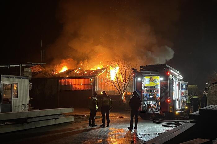 Een grote loods van het houtbedrijf stond bij aankomst van de eerste brandweerwagen in brand. De bewoners van de woning die voor de loods staat, zijn op tijd in veiligheid gebracht.
