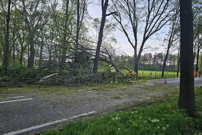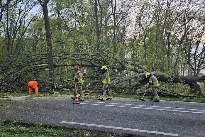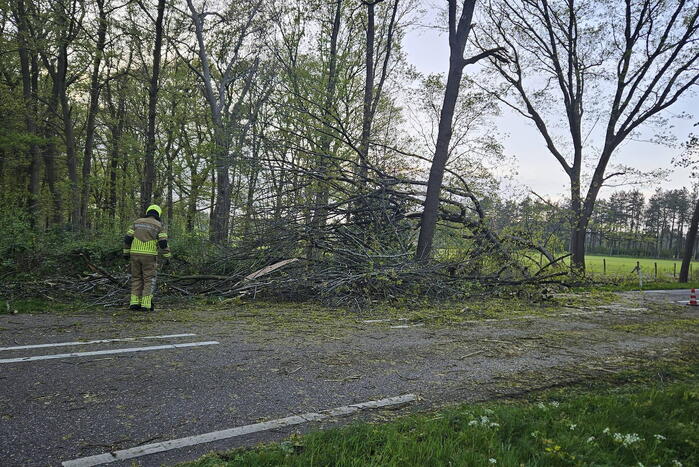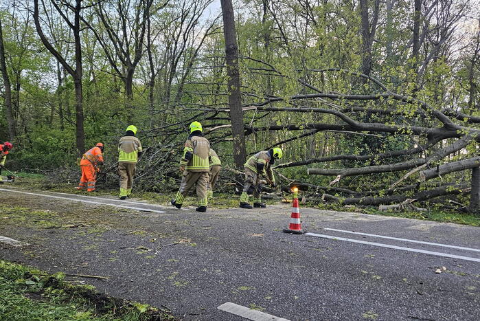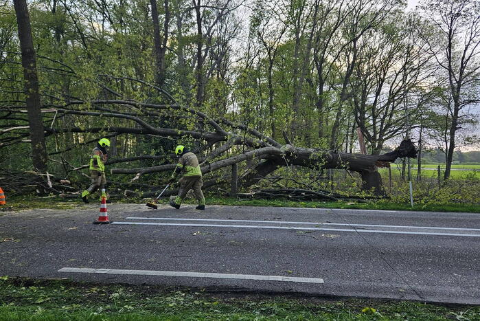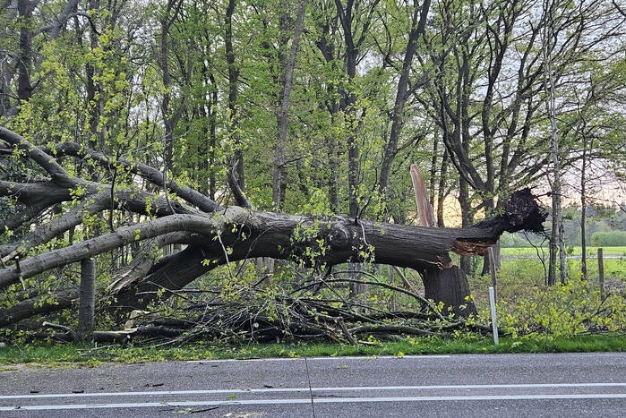 Net voor de Belgische grens viel een grote boom om. Deze blokeerde vervolgens een rijstrook van de provinciale weg. De brandweer werd ingezet om de boom in stukken te zagen van de weg te verwijderen.