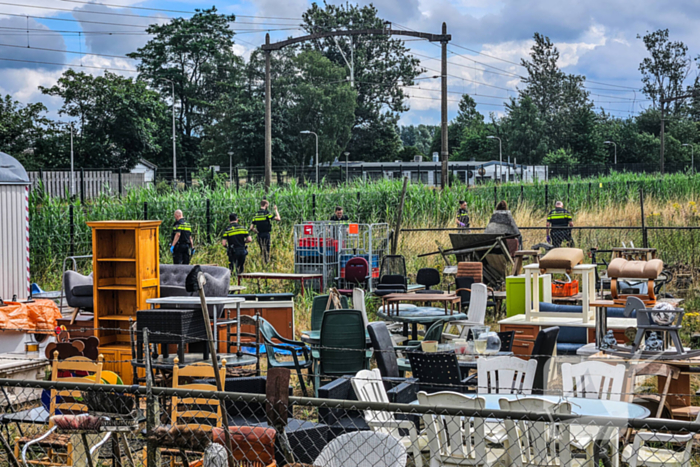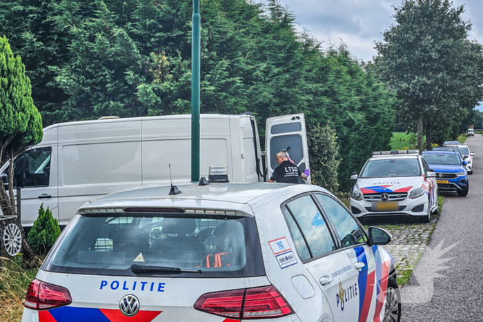 Het arrestatieteam heeft een 73-jarige man gearresteerd. Op het afgesloten terrein, waar onder andere een bouwkeet stond, werd uitgebreid onderzoek verricht door de politie en specialisten van het Landelijk Team Specialistische Doorzoekingen (LTSD).