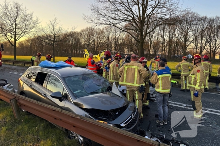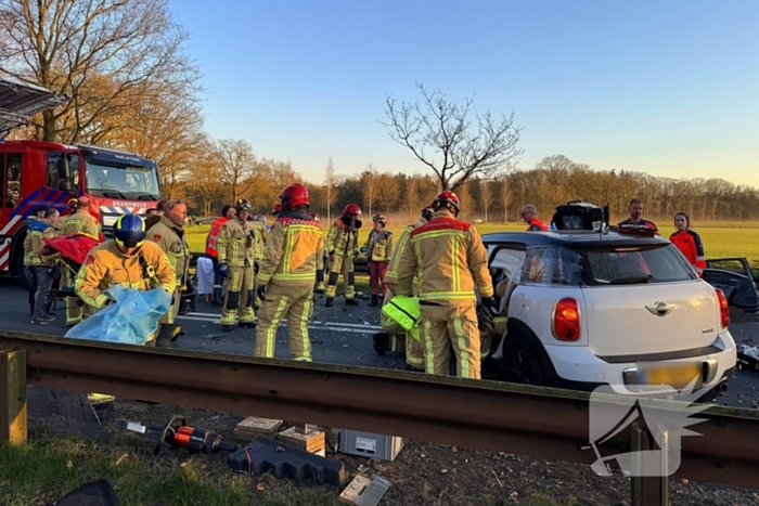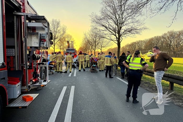 Twee personenwagens kwamen hier met elkaar in botsing. De hulpdiensten werden groots ingezet, en een Mobiel Medisch Team (MMT) werd per traumahelikopter ingevlogen. Een van de slachtoffers zat bekneld in het voertuig. Bij het ongeval zijn zeker twee zwaargewonden gevallen. Ook een hond raakte gewond en heeft helaas zijn verwondingen niet overleefd.