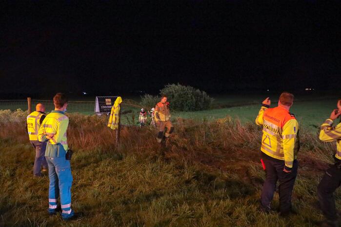 Door het ongeval is zeker een personen gewond geraakt, het slachtoffer is overgebracht naar het ziekenhuis. Meerdere hulpdiensten waaronder de brandweer kwamen naar het ongeval en zochten in de weilanden. De voertuigen werden later geborgen.