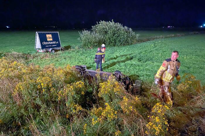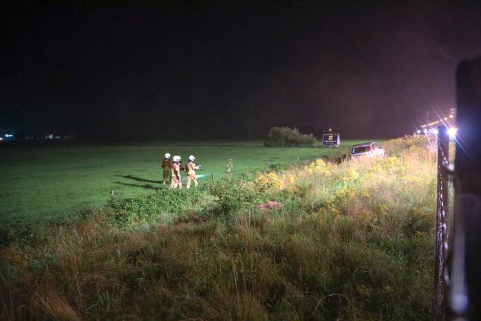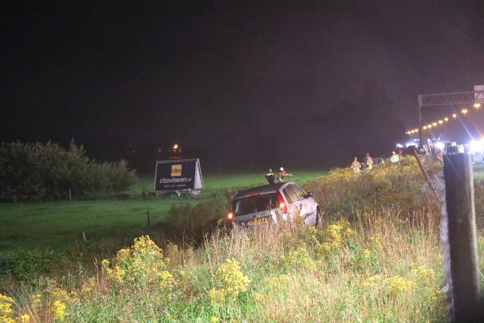 Twee voertuigen raakten door onbekende reden van de weg. De voertuigen reden door een hek en kwamen verder in het weiland tot stilstand. Een voertuig kwam ondersteboven te liggen.