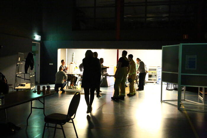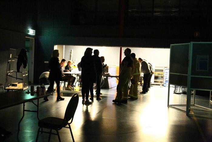 De brandweer heeft extra verlichting gebracht zodat het tellen van de stemmen op een correcte manier kan worden voortgezet. Ook een beheerder van een naastgelegen sporthal kwam ter plaatse om te assisteren.