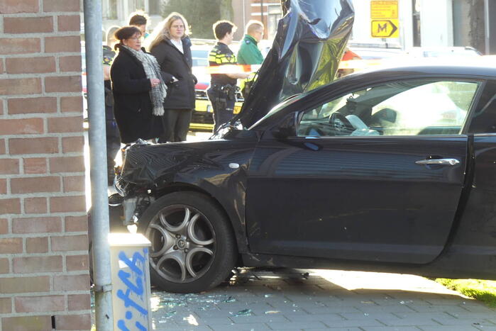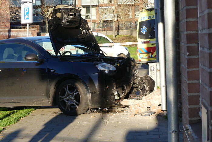 Door nog onbekende oorzaak is een automobilist van de weg geraakt en tegen een flatgebouw aangekomen. De auto en flat raakte flink beschadigd. Bij het ongeval is een persoon gewond geraakt en overgebracht naar een ziekenhuis.
