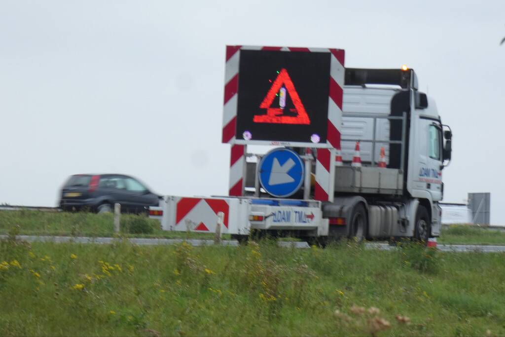 Verkeersbegeleiding bus raakt van de snelweg en belandt in greppel