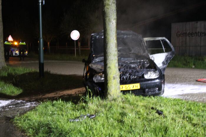 Een automobilist is met zijn auto van de weg geraakt en tegen een boom tot stilstand gekomen. Door de klap is de auto in brand gevlogen. De brandweer heeft de brand weten te blussen. De bestuurder van de auto is hierbij gewond geraakt en met een ambulance naar het ziekenhuis gebracht.