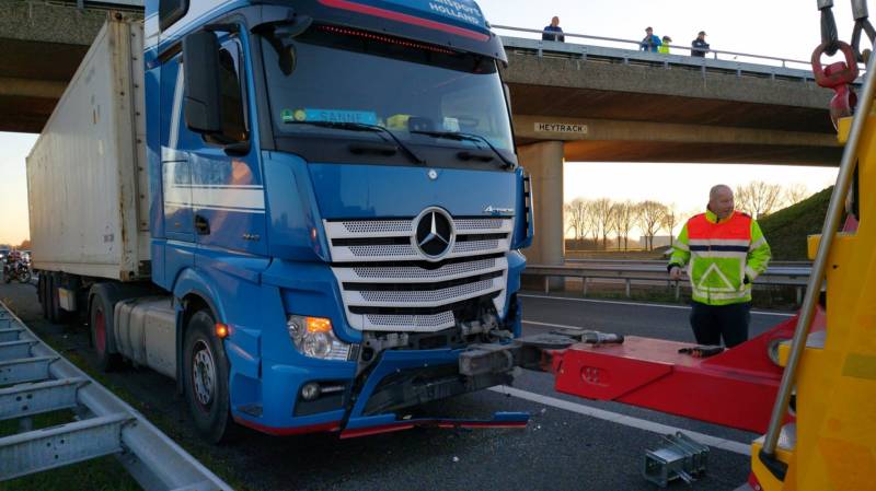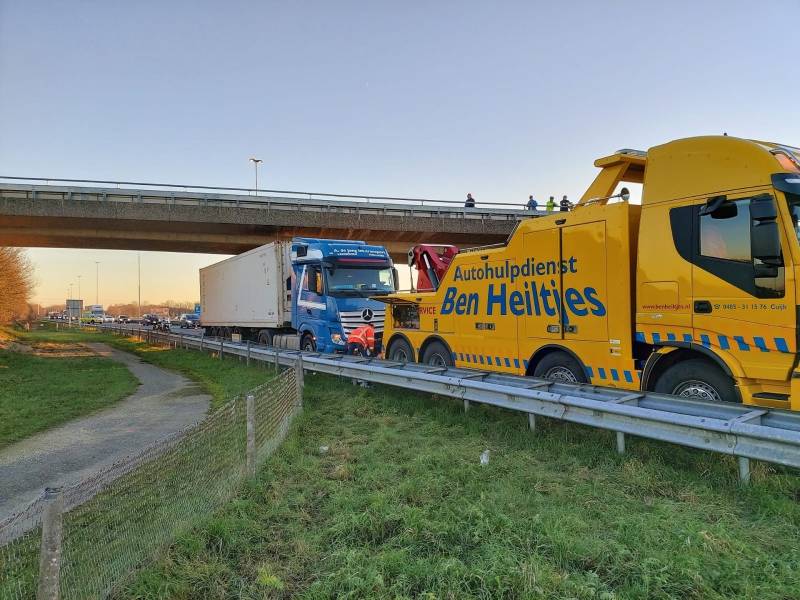 Door het ongeval is een flinke file ontstaan. Beide personenauto's en de vrachtwagen zijn geborgen.