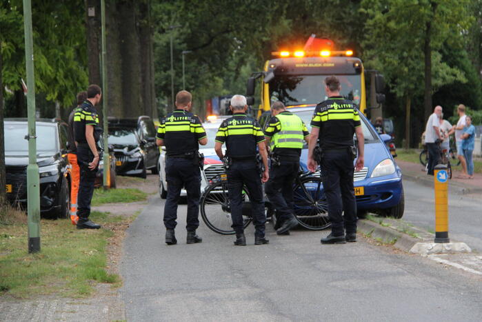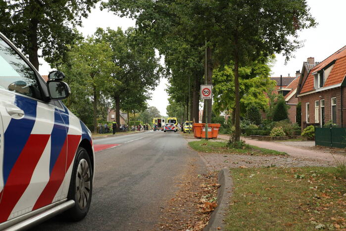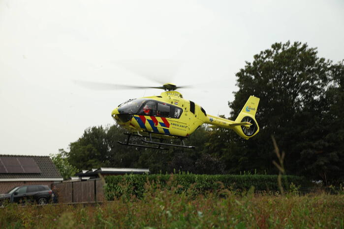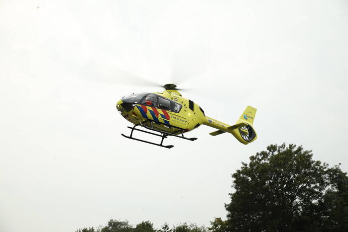 Door nog onbekende oorzaak zijn een fietser en automobilist in botsing gekomen. De fietser werd gelanceerd en raakte ernstig gewond. De automobilist belandde door het ongeval op een vluchtheuvel. Een trauma-arts werd per helikopter ingevlogen voor de behandeling van de fietser. Het slachtoffer is met zware verwondingen vervoerd naar een ziekenhuis.