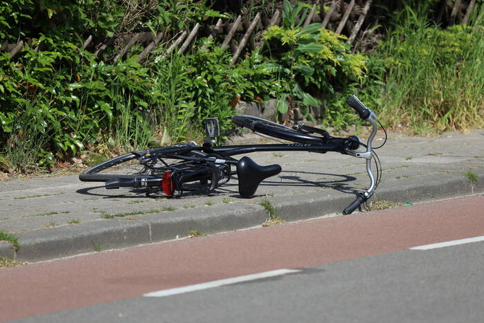 Een fietser was aangereden door een personenauto. De fietser is door het ambulancepersoneel behandeld aan een hoofdwond maar hoefde niet naar het ziekenhuis. De auto liep zware schap op aan de voorruit. Een berger is opgeroepen om de auto af te slepen.