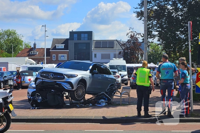 Een automobilist gaf per ongeluk gas en schoot met zijn auto door, waardoor hij op een straatbank tot stilstand kwam. Op het bankje zaten op dat moment mensen. Eén man, die op de bank zat, is daarbij zwaargewond geraakt. Hij werd gestabiliseerd en vervolgens naar het ziekenhuis gebracht. De politie onderzoekt de exacte toedracht van het incident. Onder de auto licht een fiets en een scootmobiel.