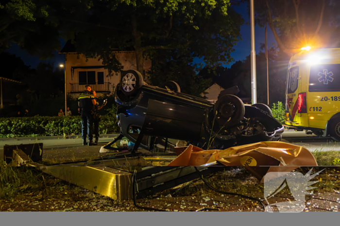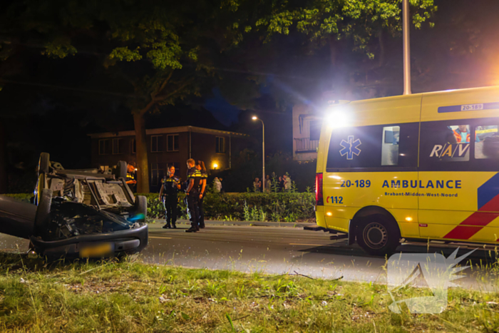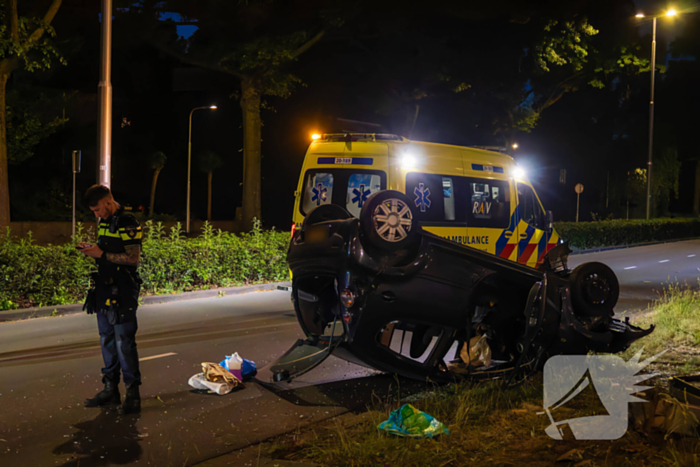 Een automobilist was door onbekende oorzaak de macht over het stuur verloren en met zijn voertuig op zijn kop terechtgekomen. Meerdere ambulances kwamen naar het incident. Of er vervoer naar een ziekenhuis noodzakelijk was is onbekend.