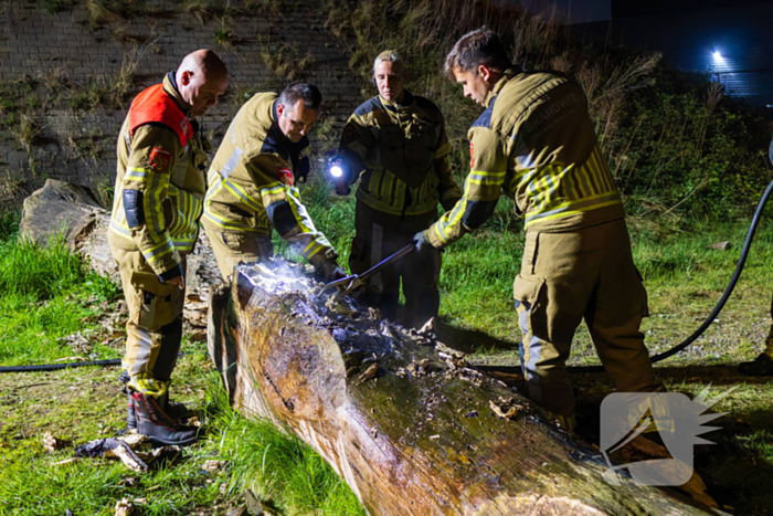 De brand deed zich voor in een boomstronk en leidde tot interventie van de brandweerlieden, die zich inzetten om het vuur te doven.