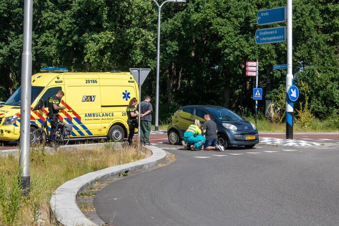 Een automobilist zag de fietsster over het hoofd met een aanrijding als gevolg. De toegesnelde hulpdiensten hebben hulp verleend. ambulancepersoneel hebben de fietsster in de ambulance gecontroleerd en behandeld op verwondingen. Zij hoefde na behandeling niet mee naar het ziekenhuis. De auto heeft lichte schade aan de bumper.
