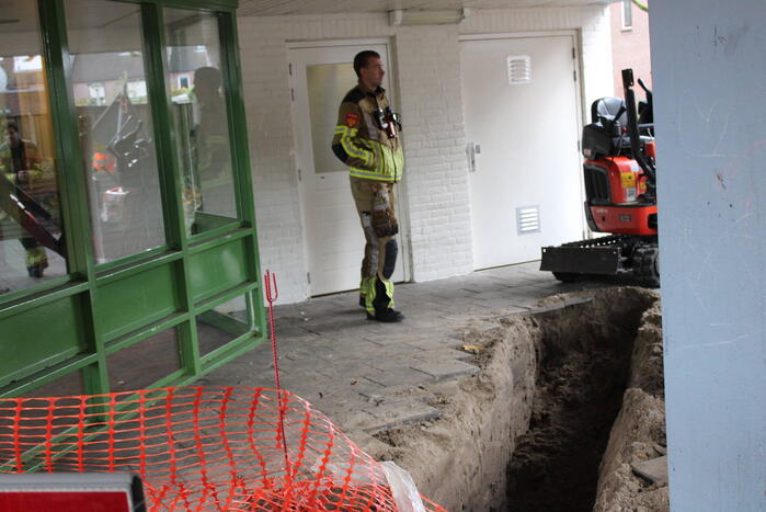 Tijdens graafwerkzaamheden was een lekkage ontstaan in een gasleiding. De brandweer werd ingezet om de situatie veilig te stellen. Na een controle bleek ontruiming van een boven gelegen complex niet nodig.