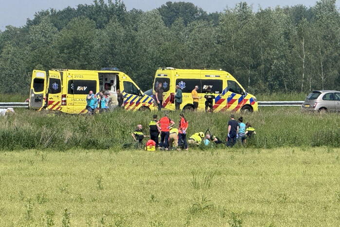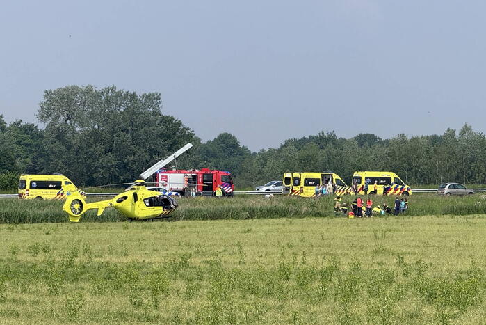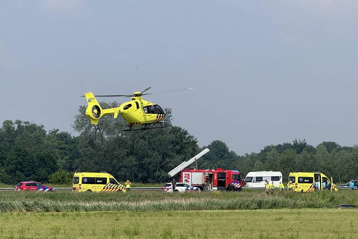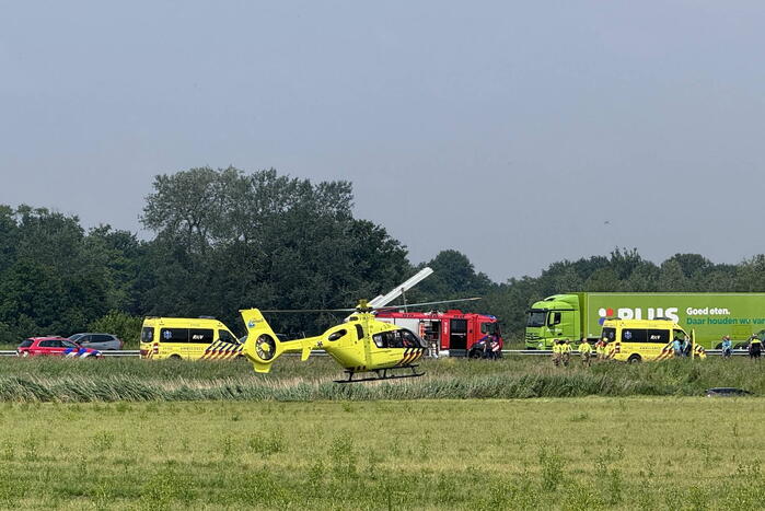 Een automobilist raakte door nog onbekende reden van de snelweg en belandde in een naastgelegen sloot. Ter ondersteuning van het ambulancepersoneel werden politie- en brandweereenheden en een traumateam opgeroepen. Het traumateam is per helikopter ingevlogen en bij het incident geland. Het medisch personeel heeft de gewonden behandeld aan hun verwondingen. Zeker één slachtoffer is naar het ziekenhuis overgebracht.