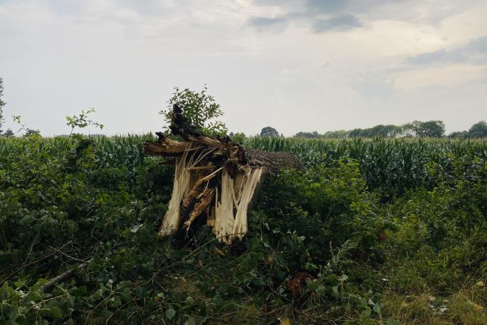 VEGHEL - Donderdagavond 13 augustus rond 19.25 uur zijn meerdere bomen omgewaaid aan de Boterpad in 112 Veghel door het noodweer.