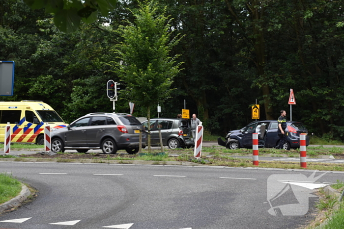Hierbij kwamen twee personenwagens met elkaar in botsing. Een bestuurder werd op eventuele verwonding gecontroleerd door het ambulancepersoneel en werd uiteindelijk per ambulance overgebracht naar het ziekenhuis.