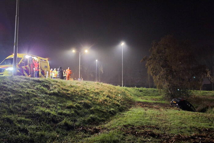 Een personenauto was door nog onbekende reden van de weg geraakt en in een naastgelegen sloot terechtgekomen. Verschillende hulpdiensten werden met spoed opgeroepen. De brandweer kon al snel weer terug naar de kazerne keren. De inzittende(n) is/zijn nagekeken door het ambulancepersoneel. Niemand hoefde naar het ziekenhuis te worden vervoerd.