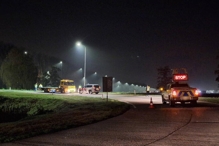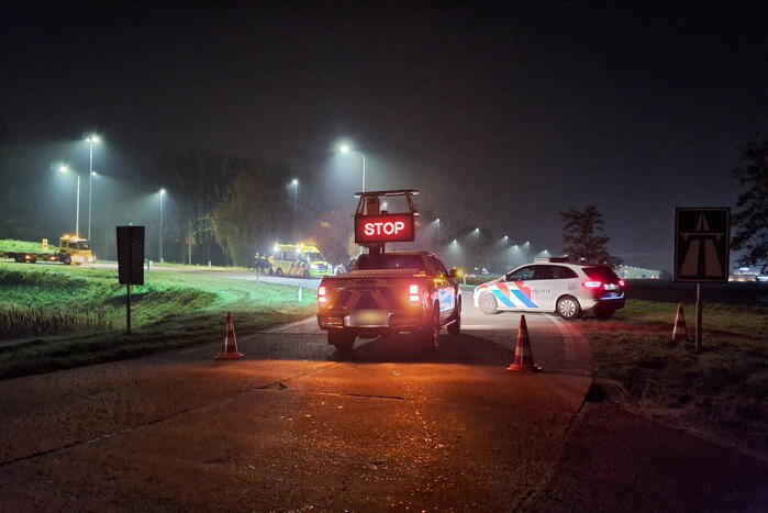 Zowel de op- als afrit waren tijdens afhandeling van het ongeval afgesloten. Een berger heeft het voertuig afgesleept.