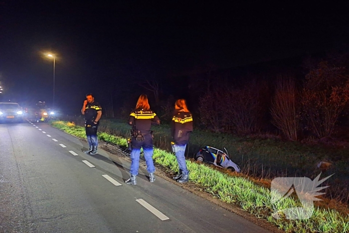 De bestuurder van een personenauto verloor de controle over het stuur toen hij vanaf een parallelweg de dijk opreed. De automobilist reed de dijk aan de andere kant af en belandde bijna in de sloot. Brandweerlieden die met spoed werden ingezet hebben de persoon uit de auto geholpen en overgedragen aan het ambulancepersoneel. De persoon werd na behandeling in de ambulance door de politie meegenomen naar het politiebureau omdat hij flink onder invloed was van alcohol.