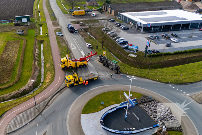 Een oldtimer vrachtwagen is daar gekanteld. Voor zover bekend zijn er geen gewonden gevallen. Het bergingsbedrijf is nog niet gearriveerd, maar zal de vrachtwagen op zijn wielen zetten en afslepen. De verkeershinder is tot nu toe beheersbaar.