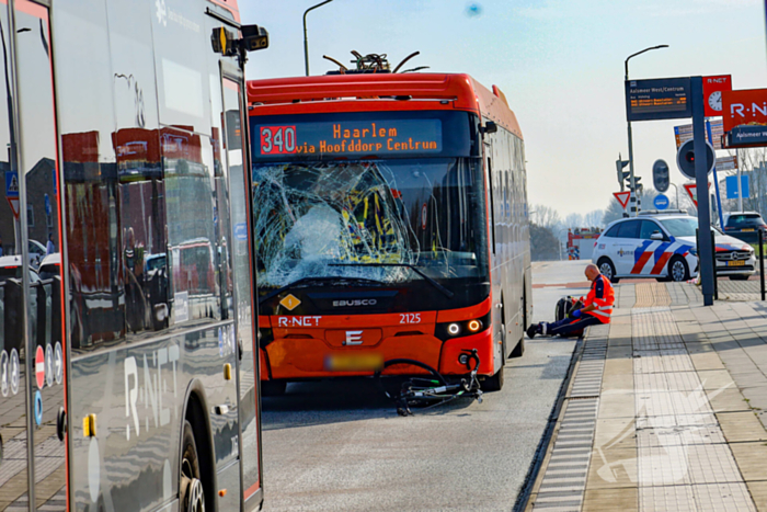 Een fietser en een lijnbus zijn met elkaar in botsing gekomen op de busbaan. De hulpdiensten werden groots ingezet waaronder een traumateam dat per helikopter werd ingevlogen. Het slachtoffer werd per ambulance naar een ziekenhuis vervoerd. De politie doet onderzoek naar de toedracht van het ongeval.