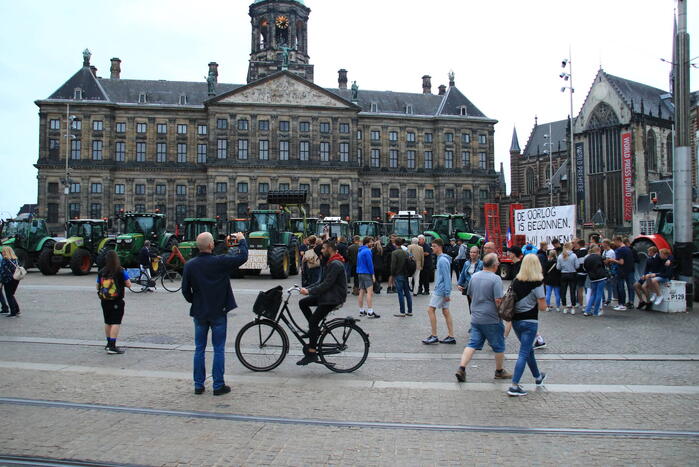 Meerdere boeren zijn met tractoren de Dam opgereden om daar vervolgens te parkeren als protestactie. De politie is aanwezig om te kijken of alles goed verloopt.