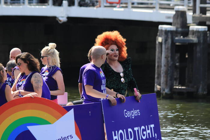 AMSTERDAM - Zaterdagmiddag was het gezellig druk tijdens de Gay Pride 2022 aan De Ruijterkade in 112 Amsterdam.