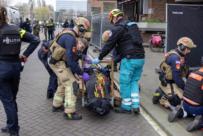 AMSTERDAM - Woensdag 29 maart werd een grote terreuroefening in het Olympisch Stadion aan de Stadionplein - s108 in 112 Amsterdam.